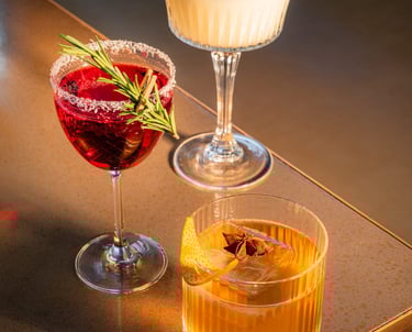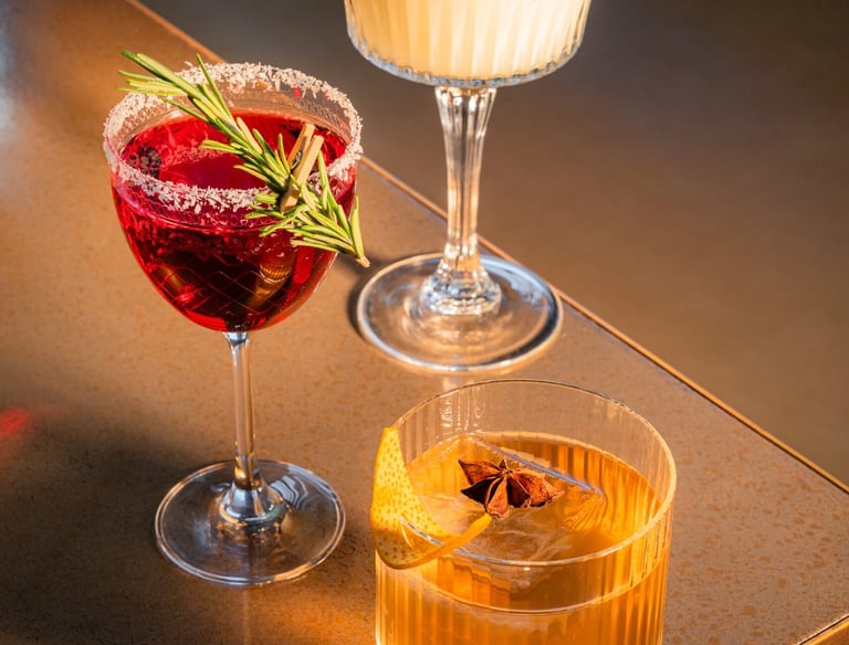 Cocktails sophistiqués servis dans une atmosphère élégante et festive.