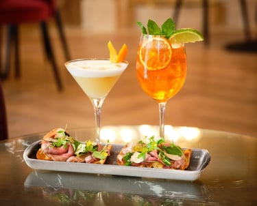 Une sélection de tapas est également disponible pour accompagner vos verres, dans une ambiance élégante et conviviale.